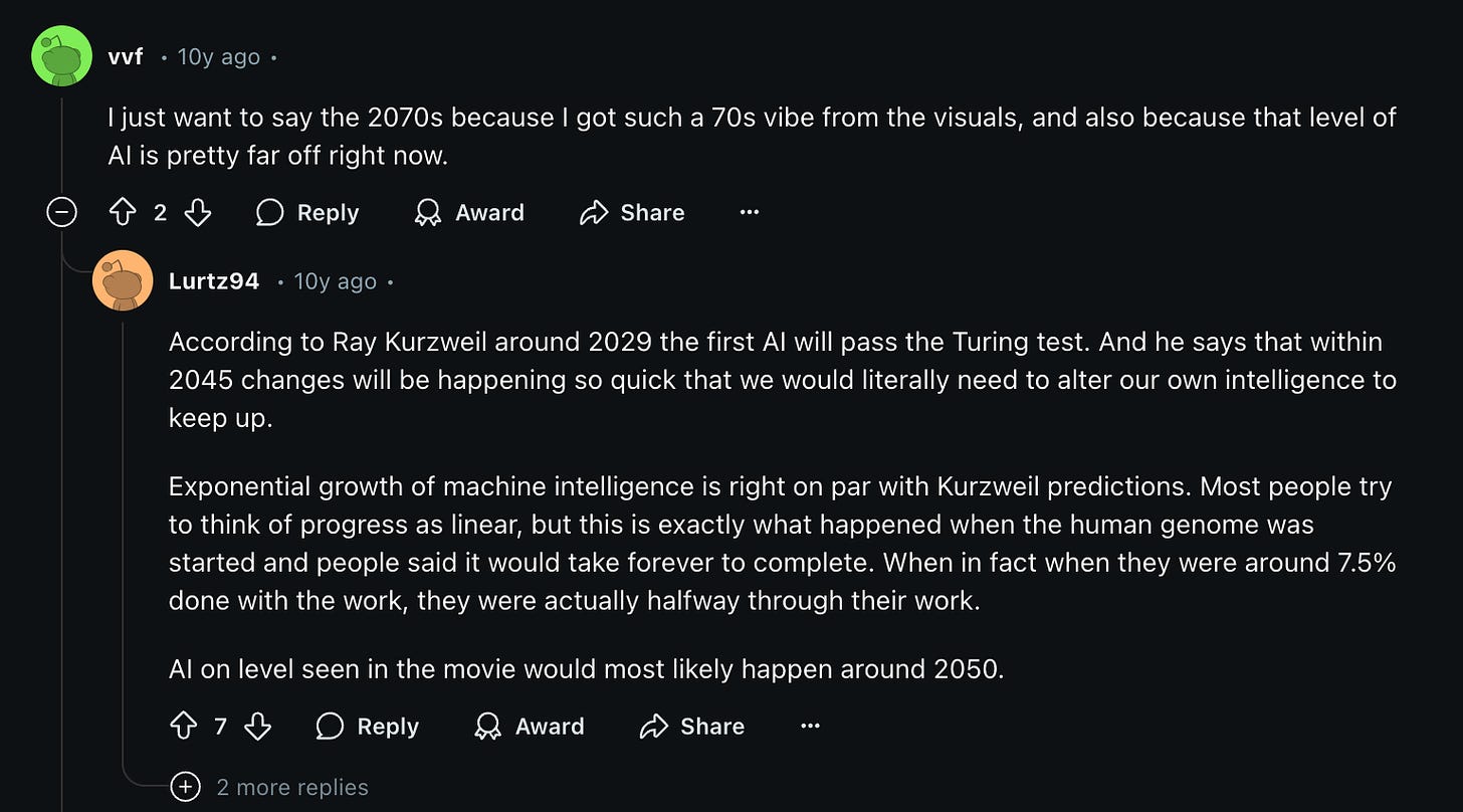 Det finns bland annat en 10 Ă„r gammal ReddittrĂ„d under Ă€mnet âWhat year does the movie "Her" take place in?â. I trĂ„den spekuleras det fritt kring nĂ€r vi kommer att fĂ„ se en motsvarighet till Samantha (den röstassistent Scarlett Johansson spelar).